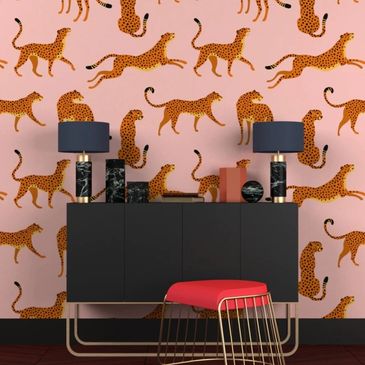 Select from hundreds of unique wallpaper patterns or customize your own. Material options include Matte, Luxe Vinyl, or Natural Grass Cloth